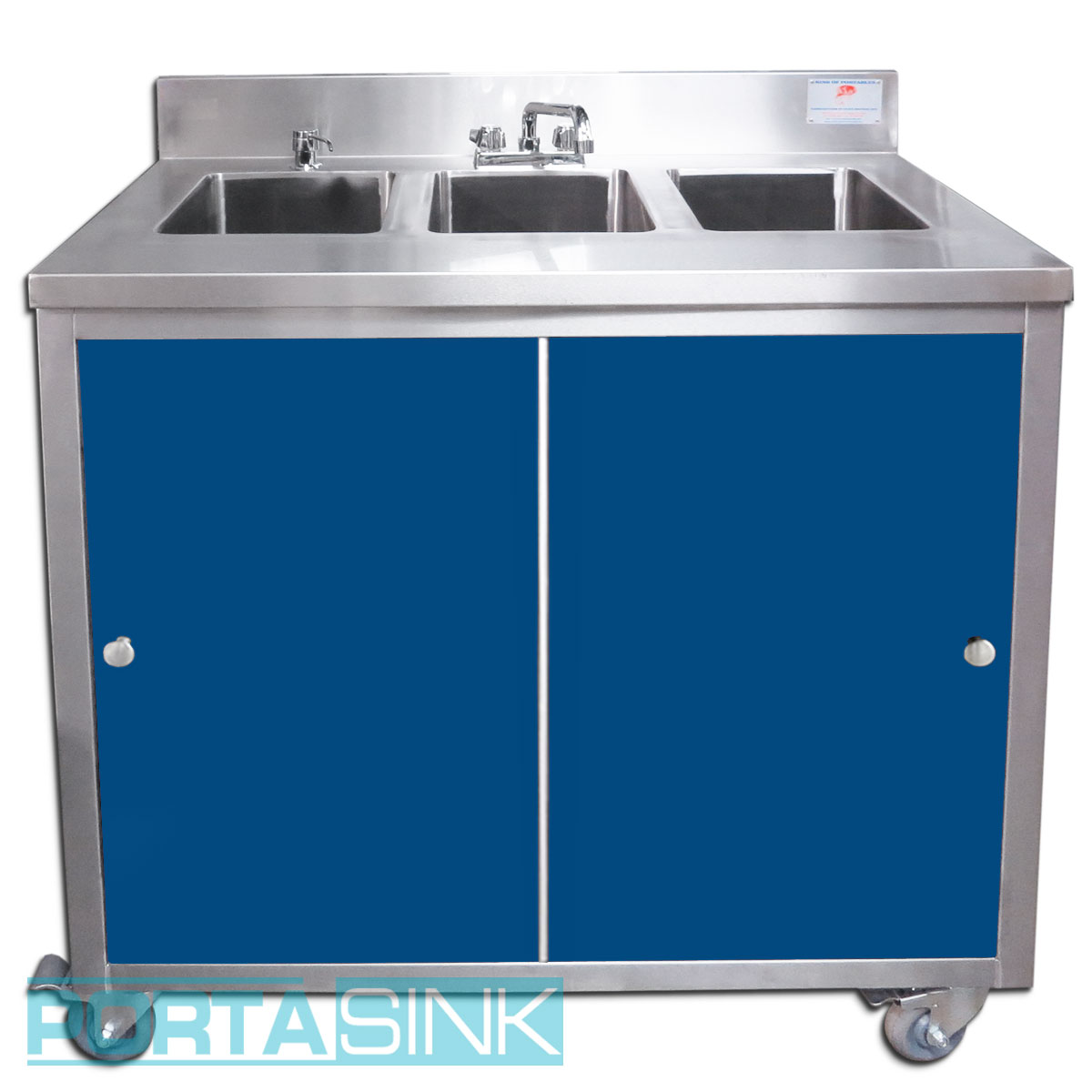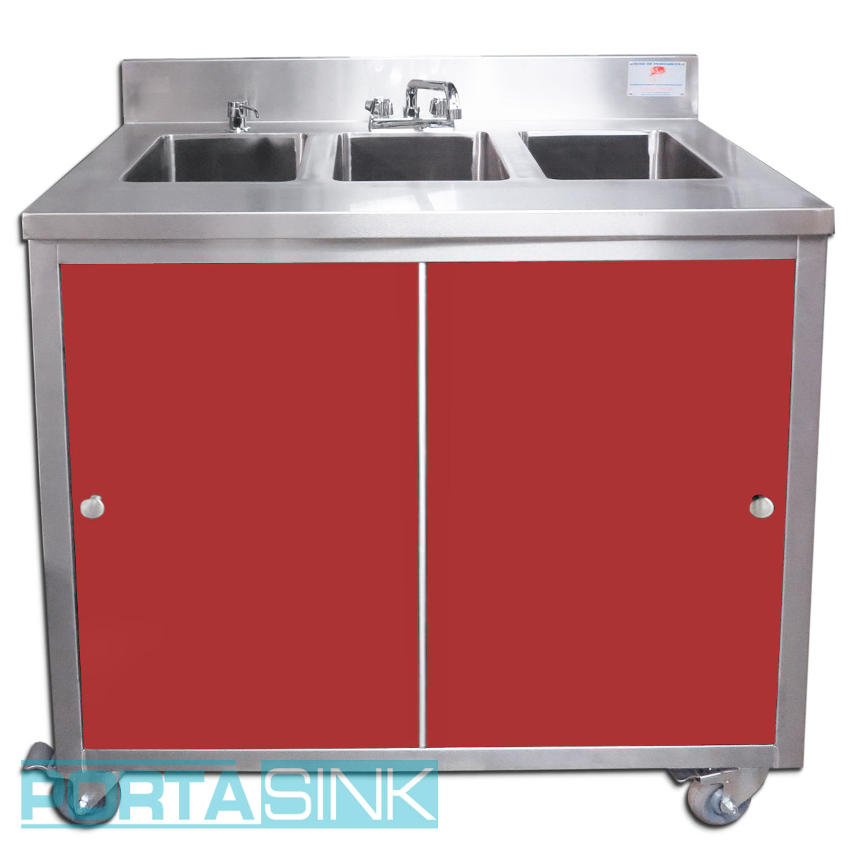 Portable Hand Sink, Stainless Steel & 3 Compartment, Acrylic Doors